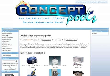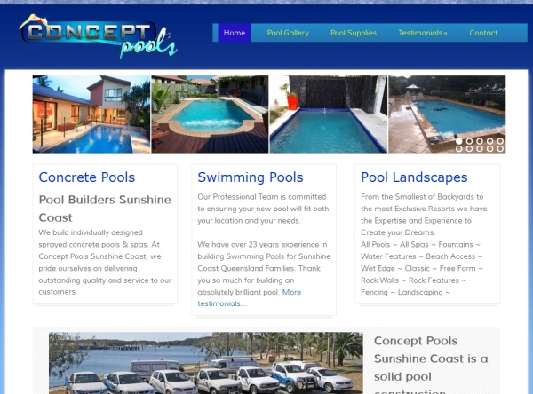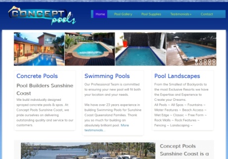 Graham and Chris have been building pools on the Sunshine Coast for almost 30 years. Their website is able to showcase the different locations and types of pools and spas they create. Concept Pools Shop is also online.