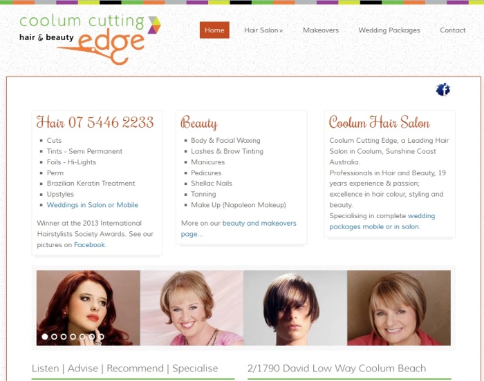 Liz and Kate, the scissor sisters of Coolum. Professionals in Hair and Beauty, 19 years experience & passion; excellence in hair colour, styling and beauty. Their website promotes their wedding packages.
