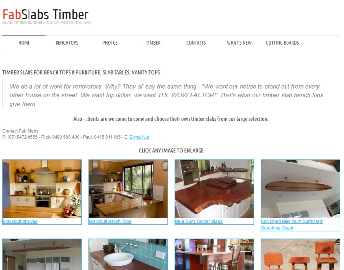 Paul and Rick produce Fab Slabs Timber. Their specialty is amazing kitchen bench tops, island benches and vanity tops. Rustic bars and bar stools. Dining tables and chairs. Beds and bedroom settings.