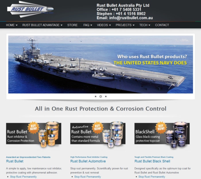 Rust Bullet: A simple to apply, low maintenance rust inhibitor, protective coating with phenomenal adhesion.