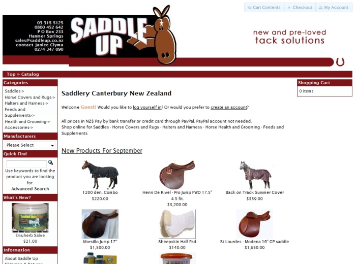 Saddlery Canterbury New Zealand. All prices in NZ$ Pay by bank transfer or credit card through PayPal. PayPal account not needed. Shop online for Saddles - Horse Covers and Rugs - Halters and Harness - everything horsie.